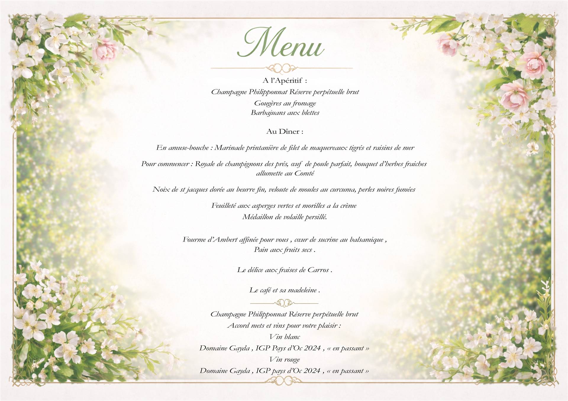 Notre Présidente Marie-Dominique Gentili, Notre Chef Luc Gamel et l'ensemble de son équipe se réjouissent de vous accueillir le,