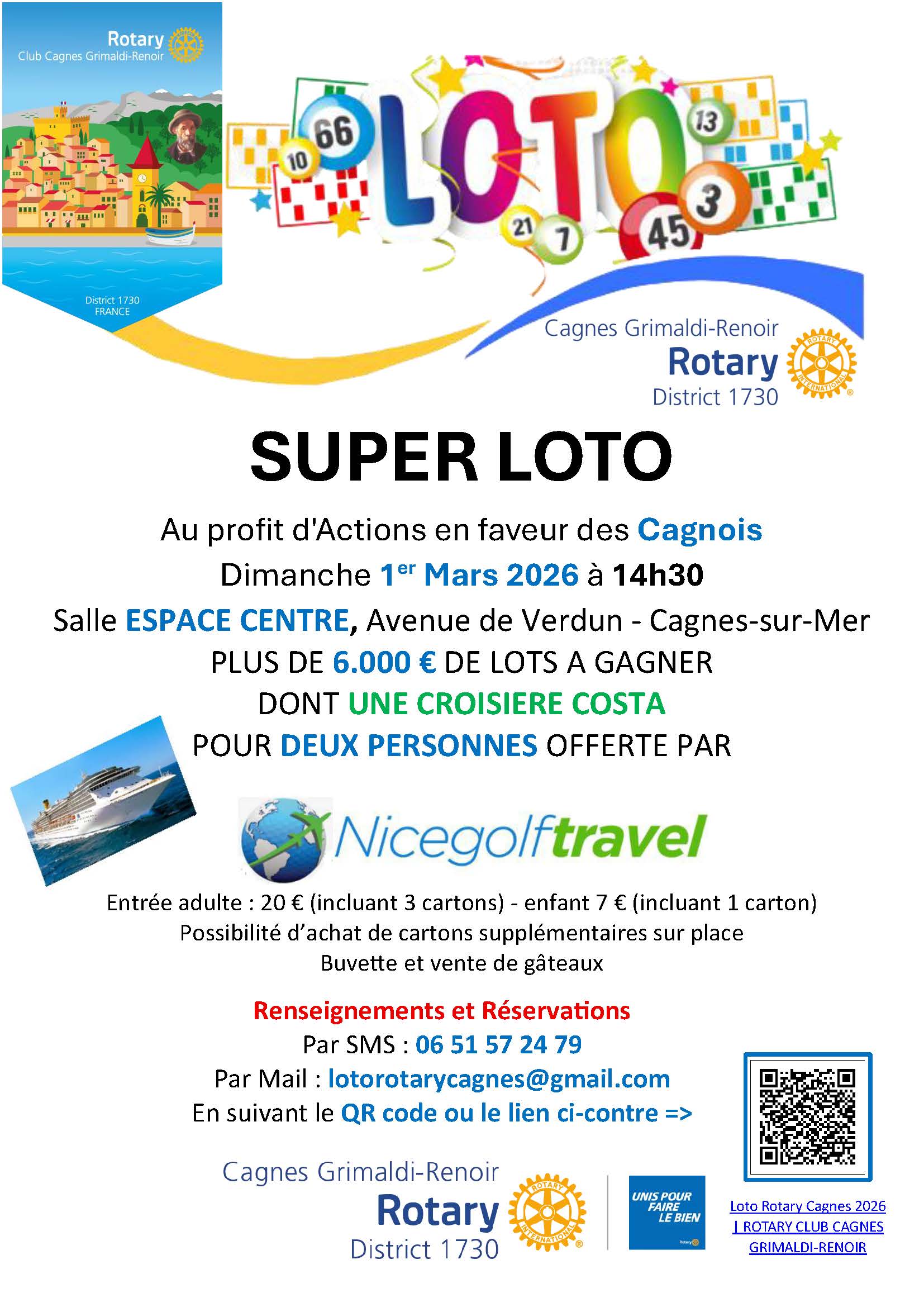 LOTO ANNUEL du RC Cagnes Grimaldi-Renoir - 1er Mars 2026 - Salle Espace Centre